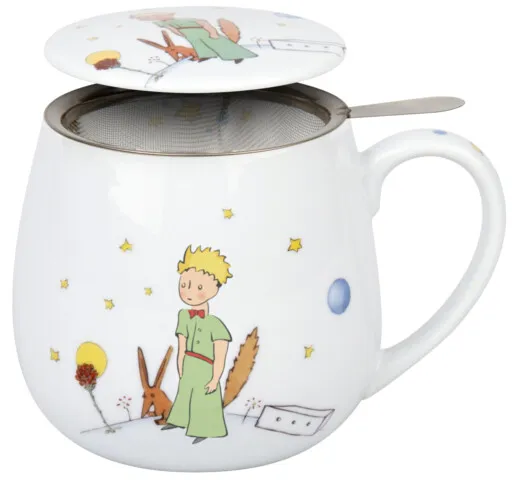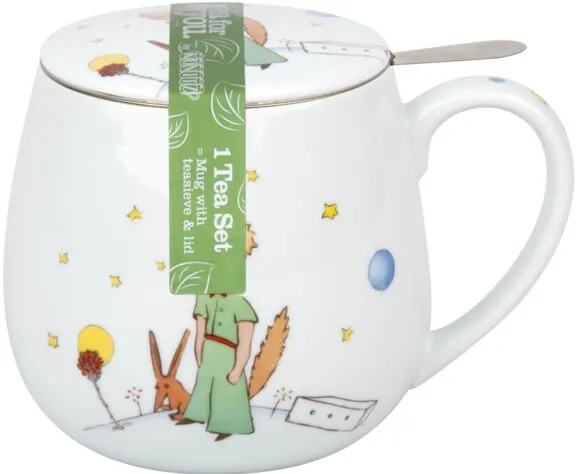 El momento del té será más mágico aún si cabe con este precioso set para infusiones compuesto por una taza de 420 ml. de capacidad, filtro de acero inoxidable y tapa de porcelana a juego con las ilustraciones del cuento del Principito.