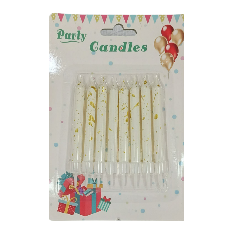 VELA MARMOLEADA BLANCA/DORADA SET8