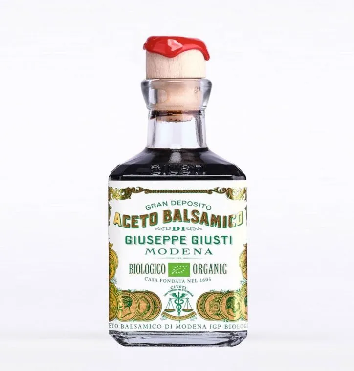 Vinagre balsámico de Módena IGP – Orgánico. Elaborado sólo con mostos y vinagres de vino de agricultura orgánica, cuidadosa y sostenible. El resultado es un vinagre balsámico fragante y picante de Módena PgI, caracterizado por una buena acidez, equilibrado por la dulzura de los mostos cocidos.