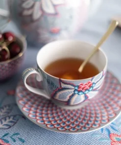 SET 2 TAZA Y PLATO 280 ML. FLOWER FESTIVAL AZUL CLARO «PIP STUDIO»