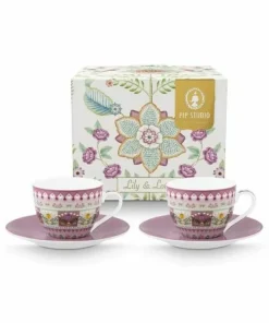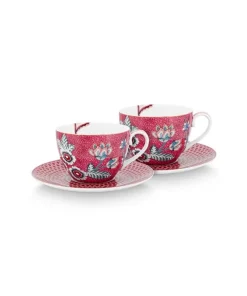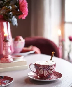 SET 2 TAZA Y PLATO 280 ML. FLOWER FESTIVAL ROSA OSCURO «PIP STUDIO»