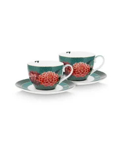 SET DE 2 TAZAS CON PLATO 280 ML. Winter Wonderland GREEN «PIP STUDIO»