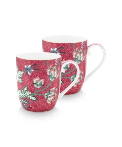 SET 2 TAZAS XL 450 ML. FLOWER FESTIVAL ROSA OSCURO «PIP STUDIO»