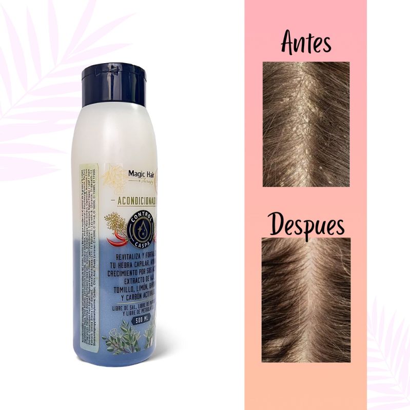 - Magic Hair Acondicionador para hidratación profunda: Nuestro Acondicionador Control Caspa Magic Hair restaura la humedad natural del cabello.