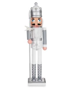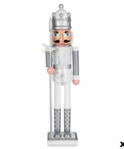 Figura Decorativa Cascanueces Blanco Plateado Plástico 13,2 x 59,5 x 11,5 cm (4 Unidades)