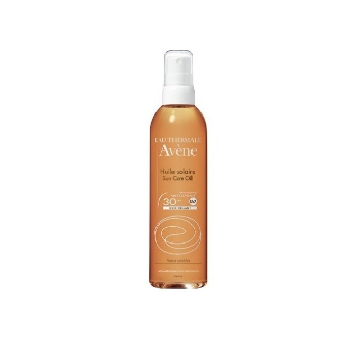 Avene Aceite Solar Pieles Sensibles SPF30, es un protector solar de amplia protección tanto como para rayos UVB como para los rayos UVA. Excelente textura, rápida absorción y acabado satinado. Apto para pieles sensibles ya que es hipoalergénico y no comedogénico, sin parabenos ni siliconas.