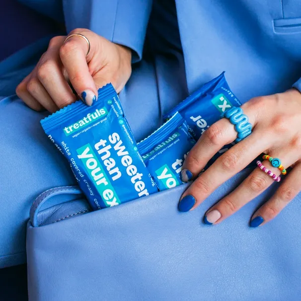barra de chocolate blanco con coco y almendra bio + vegano + sin gluten «TREATFULS»