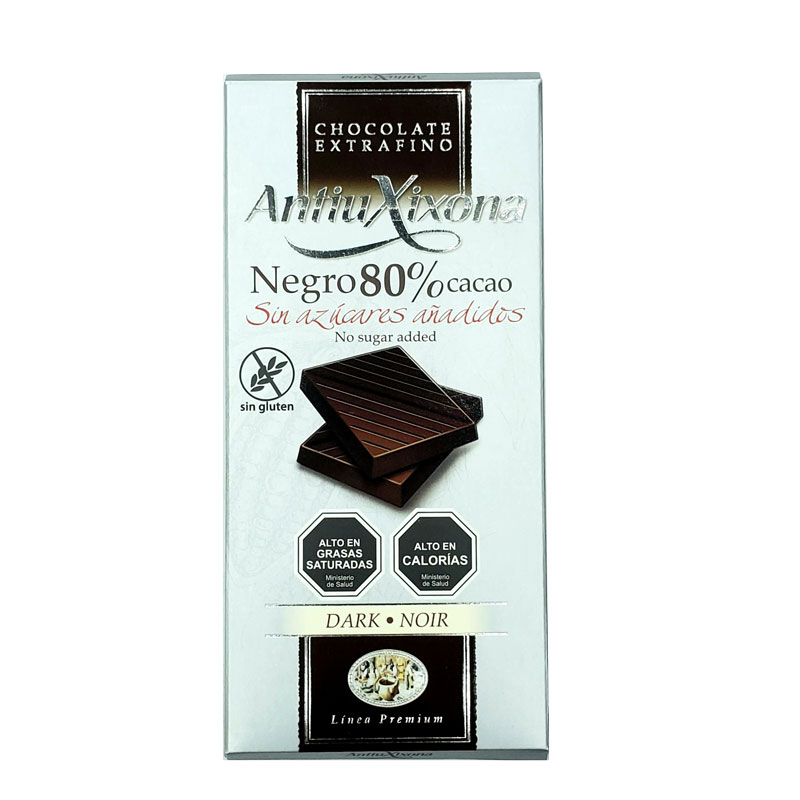 Barra de Chocolate Dark 80% Cacao, sin gluten y sin azucar añadida,100 grs, Marca Antiu Xixona