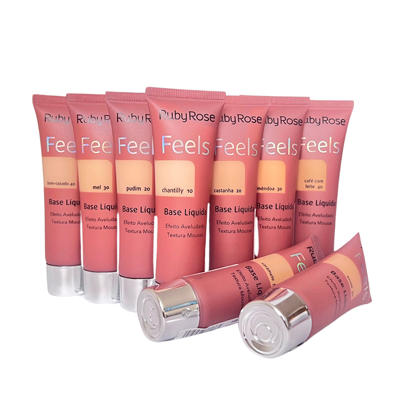 - Base Líquida para un acabado natural con Feels Rubyrose: Nuestra base líquida Feels ofrece un acabado natural que se adapta al tono de la piel, brindando un look fresco y uniforme.