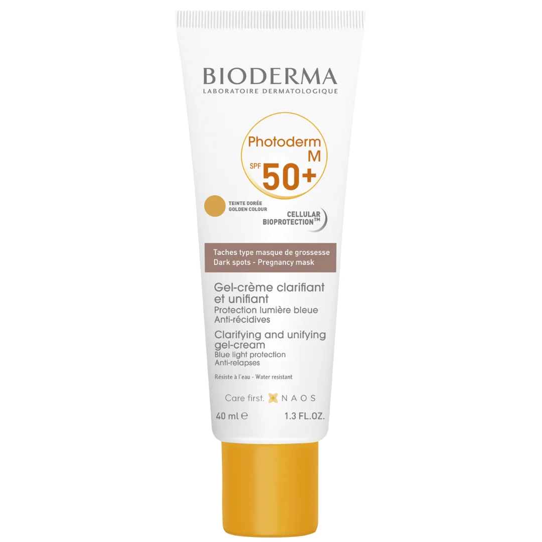 Photoderm M SPF 50+ tono dorado: Evita y reduce las manchas oscuras faciales debidas al embarazo, por cambios o tratamientos hormonales.