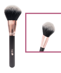 Brocha profesional de gran densidad y forma tupida, diseñada para la aplicación uniforme de polvos sueltos y compactos.