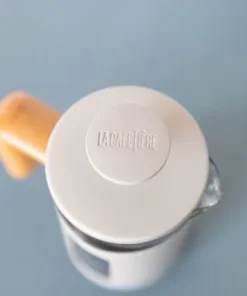 Este modelo de 3 tazas de La Cafetière es una pequeña prensa de café que combina lo vintage con lo moderno. El filtro de malla fina es duradero y está fabricado en acero inoxidable resistente al óxido. Su soporte también es de acero inoxidable. El vaso es de vidrio de borosilicato resistente al calor y a los choques térmicos. Tiene un asa de madera de abedul natural que es cómoda y permite verter la bebida con seguridad. También está disponible en tamaño de 8 tazas y en llamativos colores rojo, crema, negro, cobre y acero inoxidable cepillado.