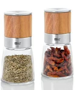 - Cortador de hierbas y especias de alta calidad de madera de acacia, acero inoxidable y cristal