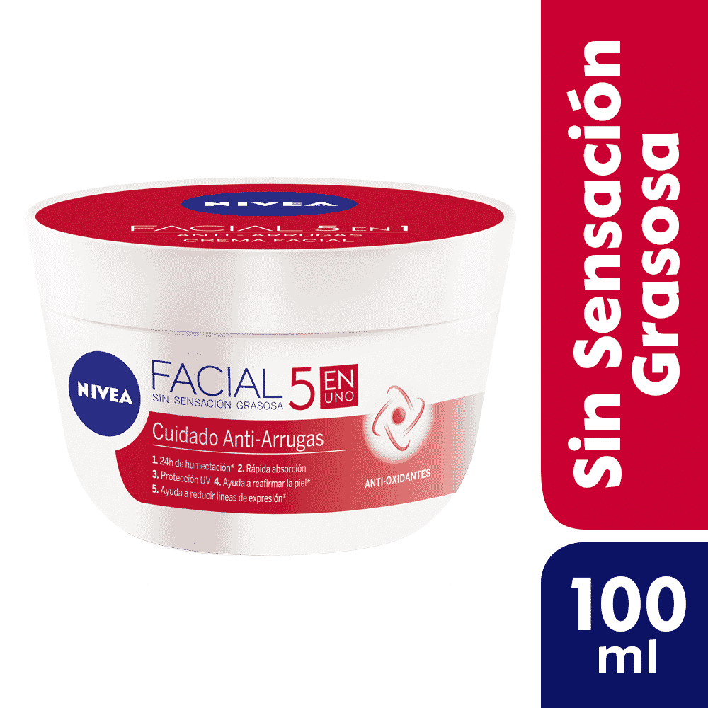 Nutrición intensiva sin dejar sensación grasosa. Prueba una crema facial que nutre intensivamente tu piel y ayuda a prevenir la aparición de las primeras arrugas. La nueva NIVEA Cuidado Anti-Arrugas está enriquecida con Vitamina E y Protección UV para que la piel luzca hermosa y con la nutrición intensiva que necesita.