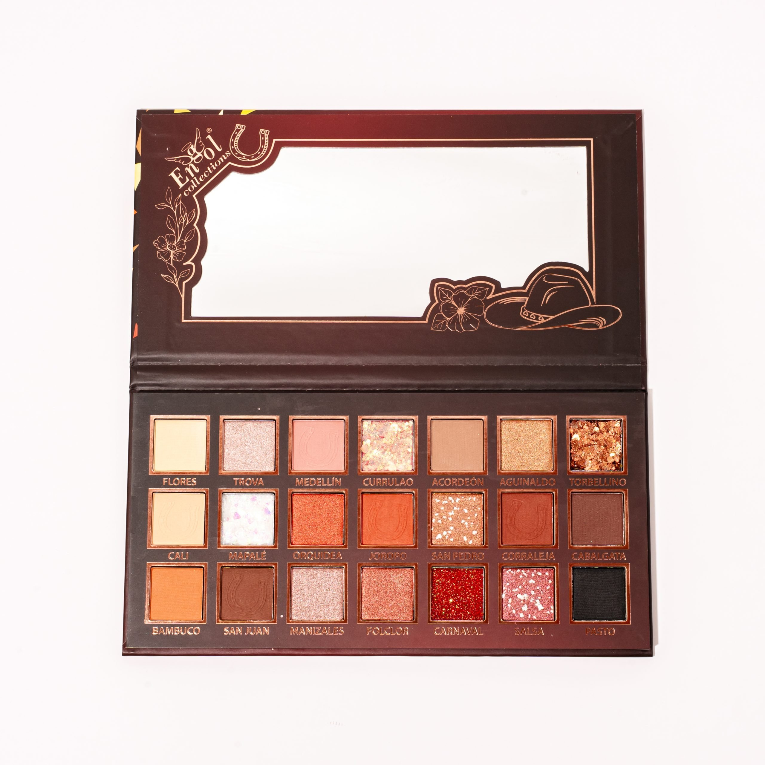 Una BEST SELLER, MEJOR VENDIDA. La paleta perfecta para el look perfecto. Con tonos 100% terracotas ideal para técnica foxy eyes y agatados. Con 21 pigmentos entre glitters, mineralizados, mattes y brillantes. Incluye espejo.