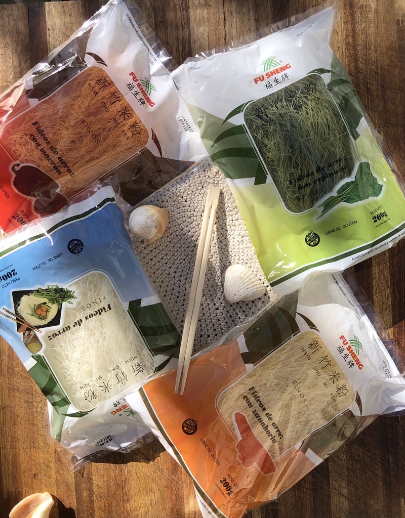 Los fideos de arroz Fu Sheng están elaborados sin gluten ni huevo, podes utilizarlos para cocinar al wok o en cualquier preparación.