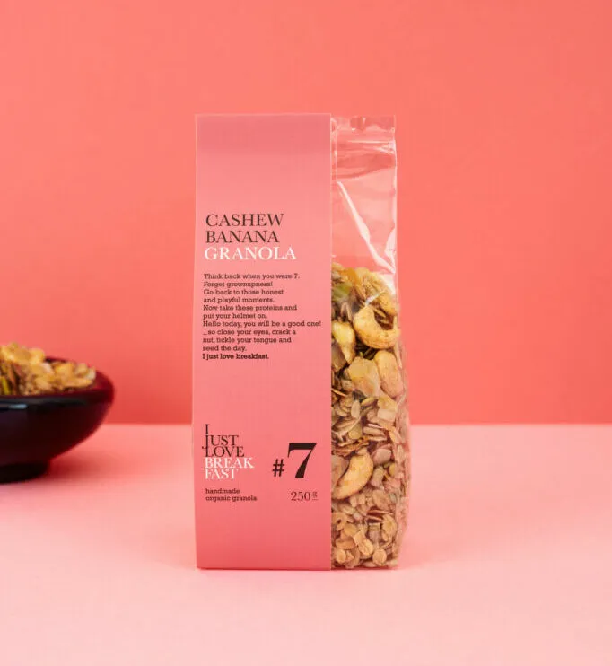 Los crujientes chips de plátano y los anacardos enteros le dan a esta granola aún más sabor. Está ligeramente endulzado con jugo de manzana concentrado para darle un toque fresco y afrutado.