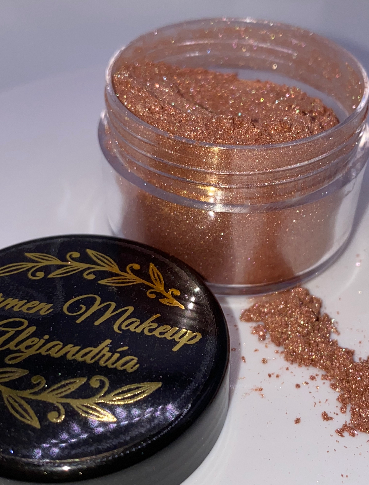 Alejandría: Dorado con un subtono cobrizo, apto para rostro y cuerpo. Efecto mejilla mojada