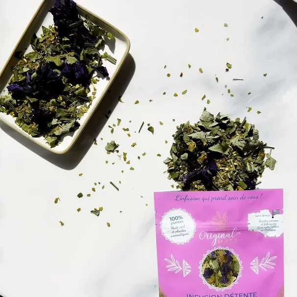 ¡NUEVO FORMATO Y NUEVO EMBALAJE! ¡RECETA SIN CAMBIOS! ¡Un compromiso local para esta infusión de temporada! Nos comprometemos a honrar a la región francesa, y más específicamente a Breton, donde se encuentra Original Mate. Esta receta se desarrolló exclusivamente con mate verde orgánico que importamos directamente de Brasil como productor y plantas y flores sembradas, cosechadas manualmente y secadas de forma natural por Frédéric y Marie, Le Clos Fleuri, cerca de Dinan (Bretaña – 22). ¡Encontrará una calidad de planta óptima en esta receta gracias al conocimiento detallado, el respeto y el trabajo de los productores por sus tierras y sus plantas! Cada infusión se diseña, ensambla y envasa en el taller Original Mate de Saint-Brieuc (22).