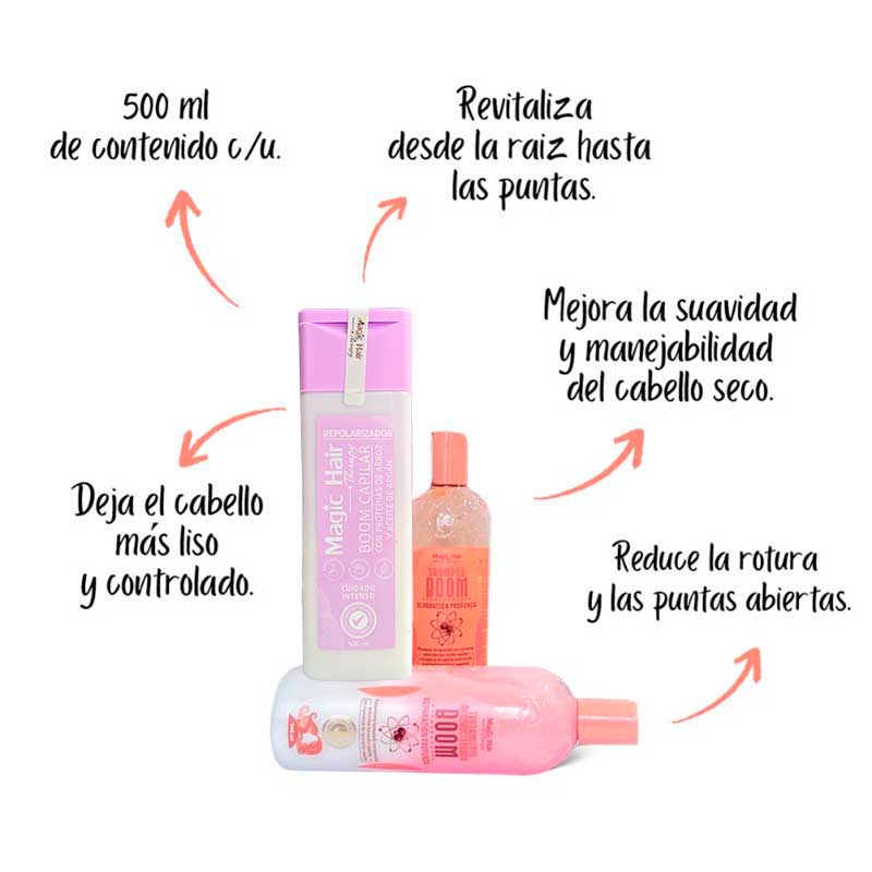 - Nuestro Kit Capilar con fórmula nutritiva: El Kit Boom Capilar Magic Hair contiene ingredientes que nutren y restauran el cabello dañado.