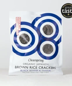 Galletas de arroz integral japonesas orgánicas – Sésamo negro y tamari «Clearspring»