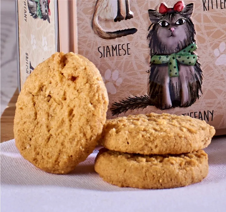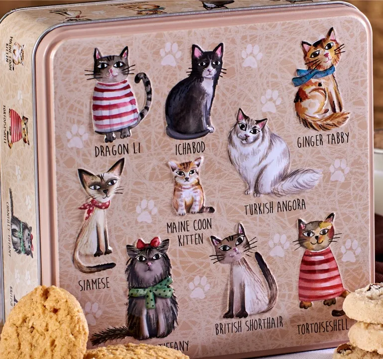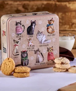 Preciosa lata decorada con adorables gatos en relieve adorable representa gatos en relieve, perfecta para los amantes de los gatos. La lata contiene las deliciosas y populares galletas inglesas Gradma Wild´s de jengibre con limón, limón y galletas de chocolate. Hechas al horno, según el método tradicional y con los mejores ingredientes.