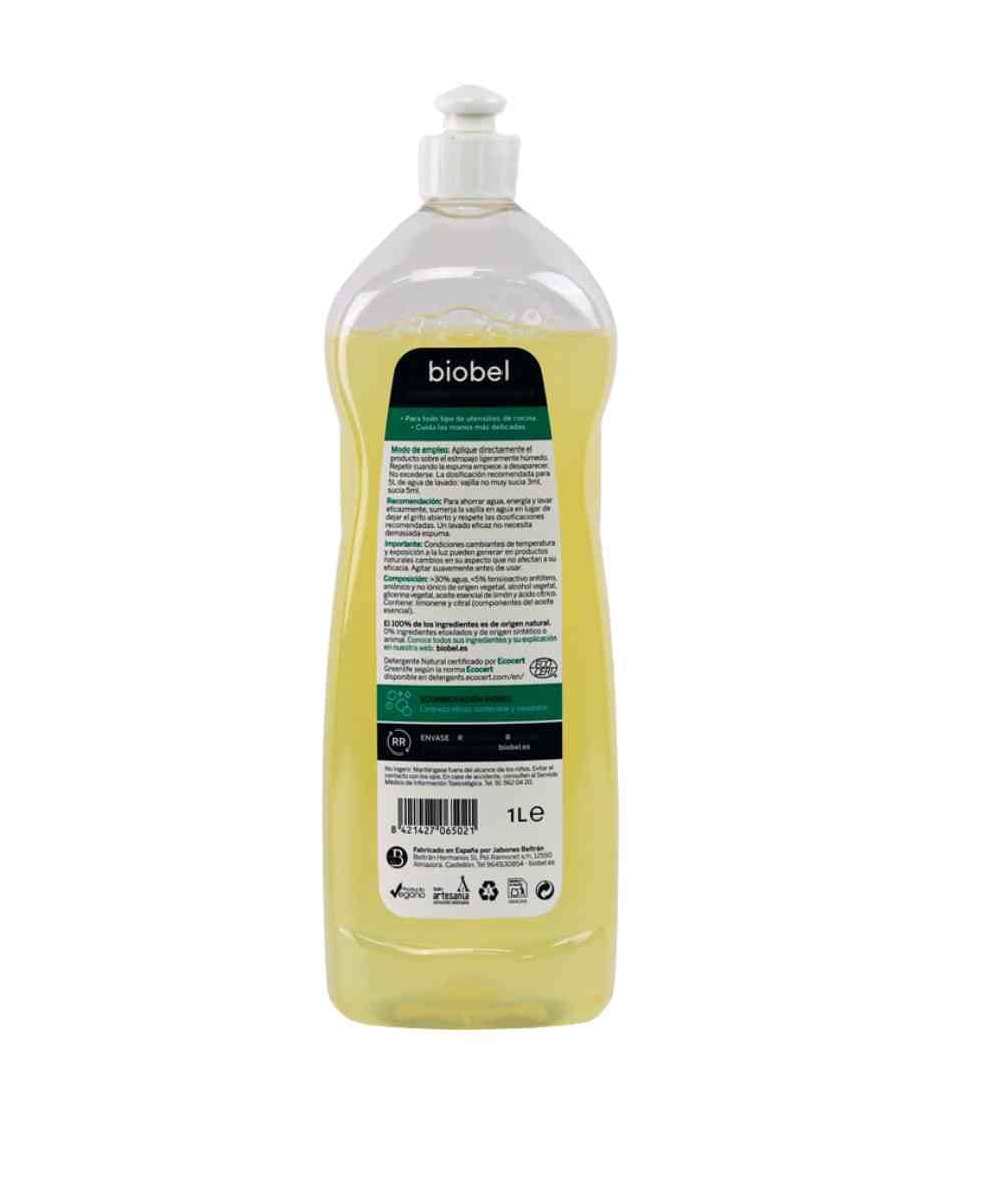 El Lavavajillas líquido ecológico de Biobel es ideal para limpiar manualmente tu vajilla, especialmente para desengrasar y abrillantar de forma natural.
