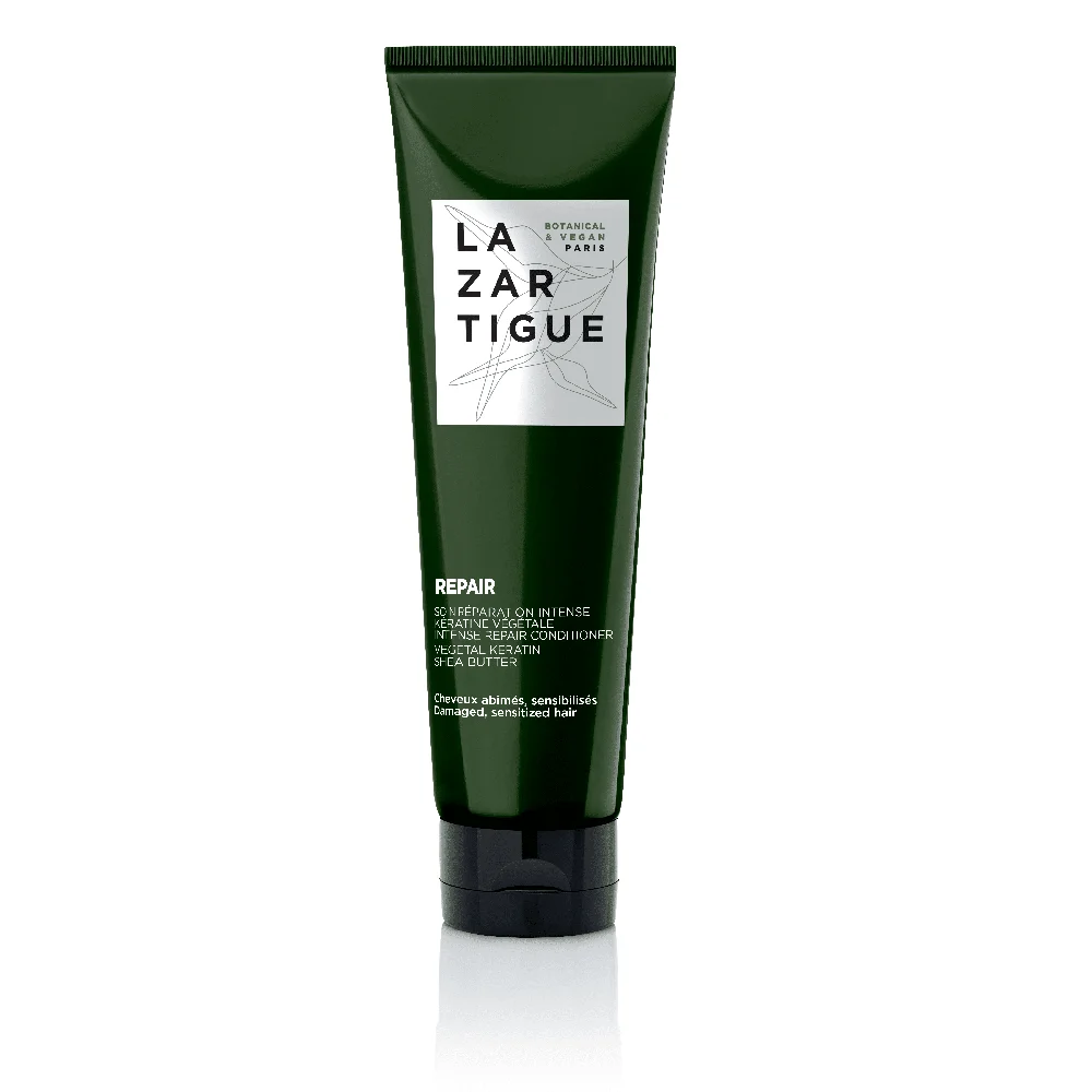 El acondicionador vegano de reparación intensa de Lazartigue Repair es un cuidado del pelo dañado y debilitado, gracias a su contenido en keratina vegetal y ácido hialurónico. Con un 92% de ingredientes naturales. Nutre y repara las puntas abiertas, dejando el cabello más fuerte, suave y con brillo.