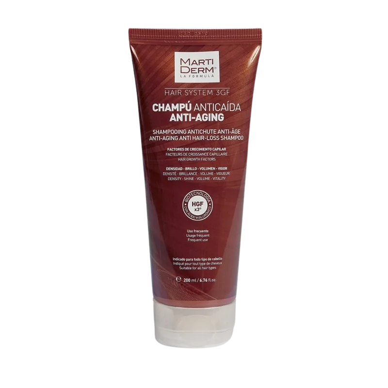 El Champú Anticaída Anti-Aging ayuda a conseguir un cabello con más cuerpo, densidad y vigor. Aporta brillo, suavidad e hidratación a los cabellos débiles con tendencia a la caída y mejora el anclaje al cuero cabelludo. Combate el envejecimiento capilar y mejora el anclaje al cuero cabelludo.