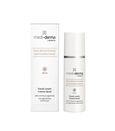 Crema despigmentante indicada para pieles fotoenvejecidas. Gracias al factor de protección SPF50, la crema facial con pigmentos luminosos está indicada como tratamiento despigmentante de día. Crema despigmentante con pigmentos luminosos que aportan luminosidad a la piel. La sinergia de sus activos despigmentantes ayudan a aclarar y a reducir la apariencia de la mancha mejorando el tono irregular de la piel. Contiene filtros físicos y químicos.