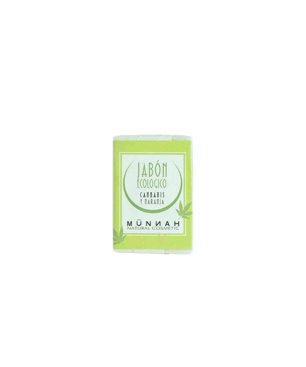 El Mini Jabón sólido Cannabis y Naranja de ph neutro de Münnah es ecológico y vegano.