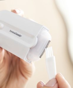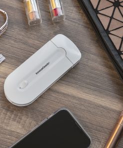 Una moderna y discreta mini rasuradora recargable femenina con luz LED ideal para una depilación indolora, rápida y eficaz en cualquier momento y lugar donde se necesite. Gracias a su tecnología de micro-oscilación, corta el vello de una sola pasada, sin causar dolor ni irritación. Una forma fácil y cómoda de eliminar el vello, dejando la piel tersa y suave. Por su tamaño reducido y su diseño ligero y compacto, es muy fácil de llevar y guardar en cualquier parte, ya que ocupa muy poco espacio. Esta mini rasuradora ergonómica y portátil es muy fácil de usar con total comodidad, sin necesidad de cables ni enchufes. Dispone de tapa protectora para el cabezal rasurador y botón on/off, pero el dispositivo sólo se pone en funcionamiento cuando entra en contacto con la piel, gracias a su sensor táctil de seguridad. Si no está en contacto con la piel, se detendrá automáticamente tras varios segundos. Su luz LED (tecnología “sensa-light”) permite una mejor y mayor visualización de la zona a depilar, permitiendo ver incluso los pelos más cortos y finos. Para un uso óptimo, hay que deslizarla en el sentido opuesto al vello (en un ángulo de entre 25º y 35º), sin aplicar excesiva presión. Se puede utilizar en todo el cuerpo y es apta para depilación en seco. El cabezal se puede extraer fácilmente si se desea desmontar. Incluye un pequeño cepillo de limpieza y cable de carga USB a micro USB.