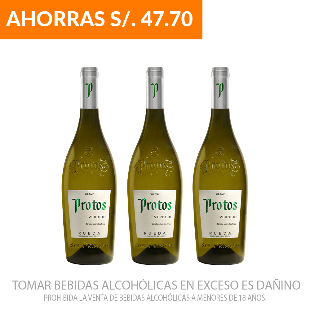 Pack Vino Blanco Verdejo Protos x 750ml X3Bot