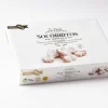 Panettone horneado relleno de crema de Limoncello cubierto de chocolate blanco y virutas de chocolate al limón.