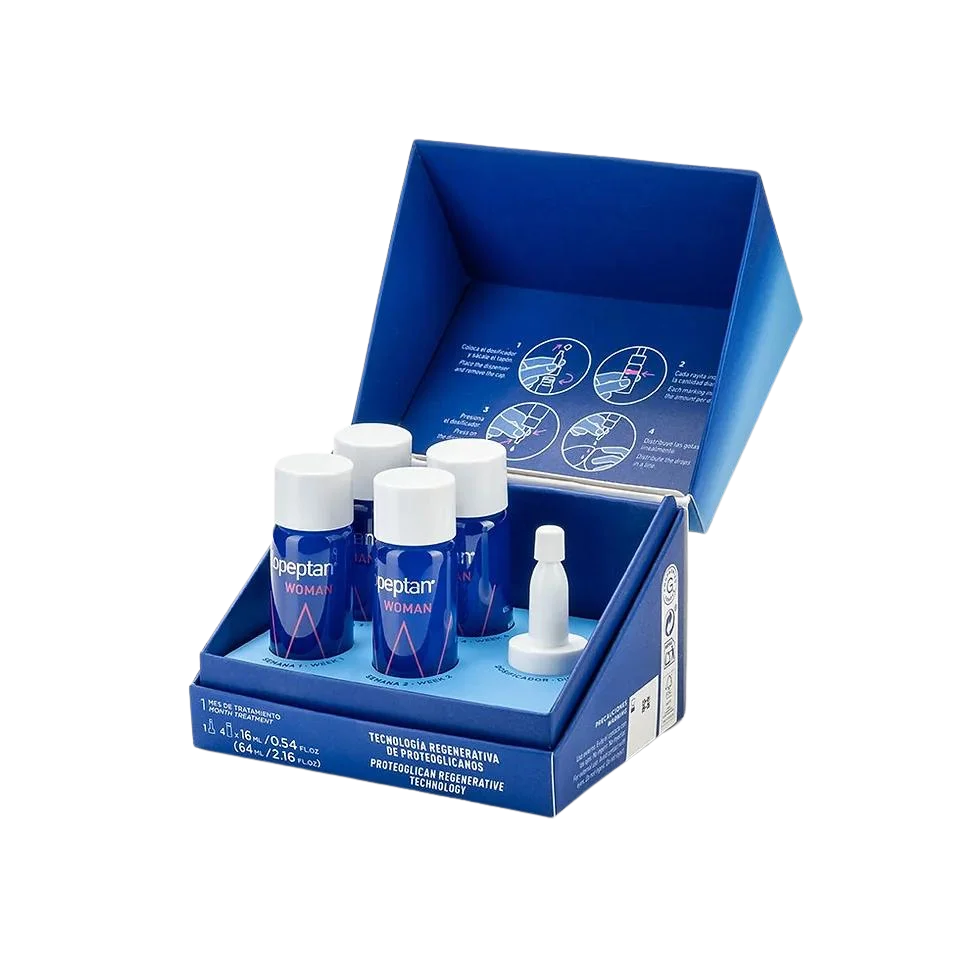 Cada caja contiene producto para un mes (4 ampollas) y, cada ampolla cuenta con la cantidad necesaria de producto para una semana.