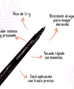 Plumón delineador de ojos negro, resistente al agua, de larga duración y con punta precisa para trazos definidos y fáciles.