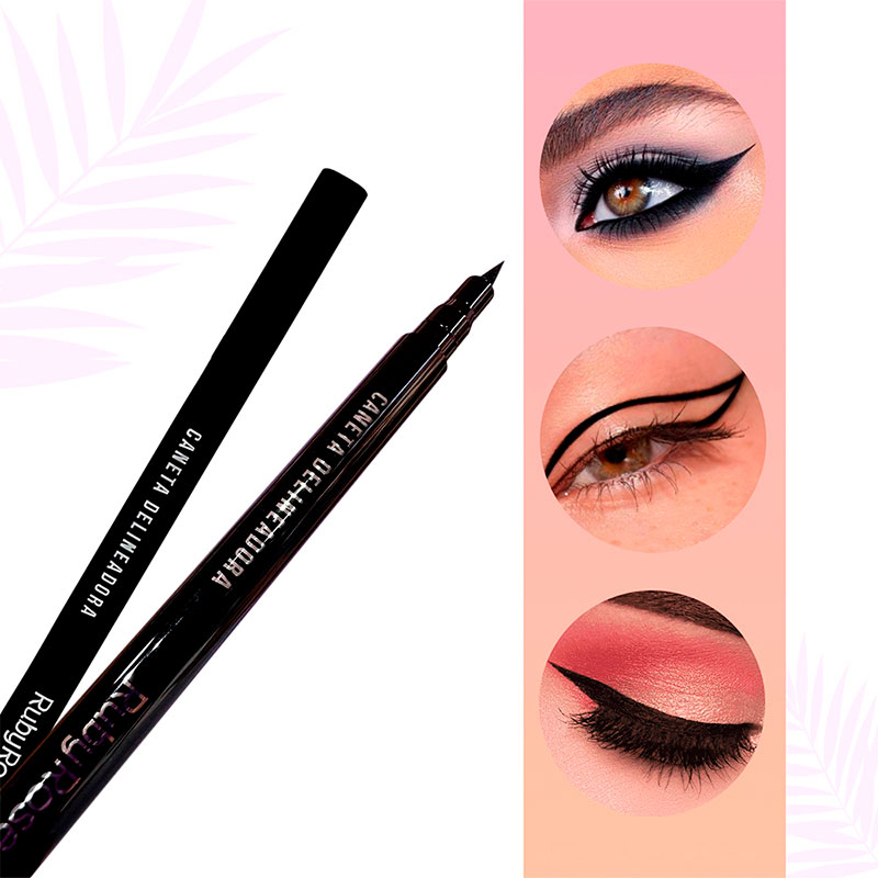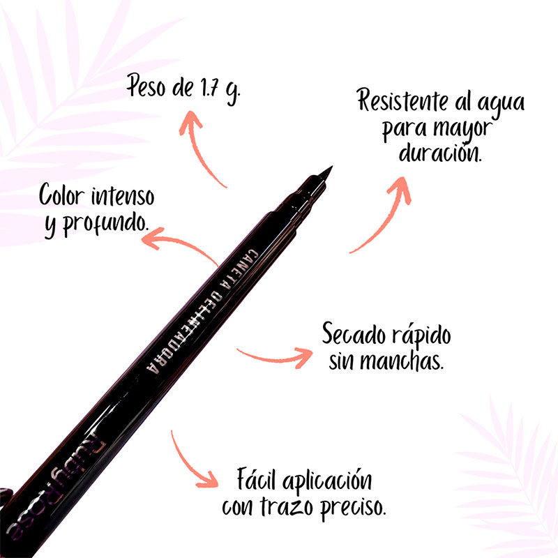 - Delineador Ruby Ros con aplicación precisa: Plumon Profesional Ruby Rose facilita trazos finos y definidos, desde líneas sutiles hasta looks más atrevidos.