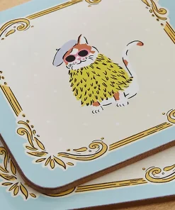 Cool Cats se inspira en la moda de los años 60 y presenta un diseño kitsch y divertido con vibrantes toques de rosa y amarillo. Las divertidas imágenes muestran gatos traviesos disfrazándose y divirtiéndose, capturando el espíritu animado de la época y agregando un toque extravagante.