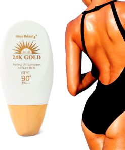 El Protector Solar 24K Gold SPF90+ Waterproof ofrece una cobertura avanzada con SPF90+ y partículas de oro 24K, protegiendo contra los rayos UV y brindando luminosidad a la piel. Su fórmula resistente al agua asegura protección duradera en exteriores, ideal para climas cálidos o deportes al aire libre. Perfecto para quienes buscan cuidado y brillo en su piel.