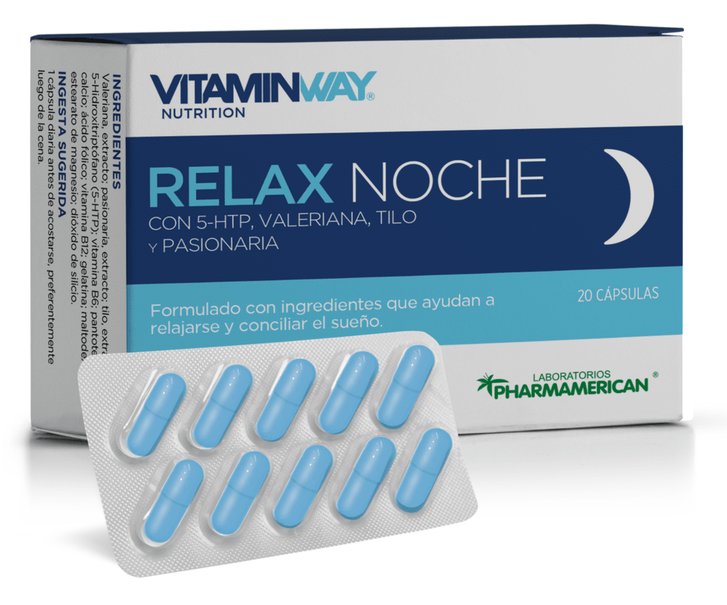 El suplemento nutricional Relax Noche Vitamin Way® ayuda a relajarse y conciliar el sueño. Formulado con ingredientes de origen vegetal que ayudan a mejorar la calidad y cantidad de horas de sueño. No produce dependencia, embotamiento matinal ni altera los reflejos.