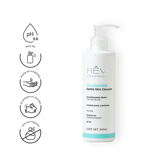 Gel dermolimpiador de uso dermatológico que otorga a la piel una profunda limpieza y agradable sensación de hidratación.