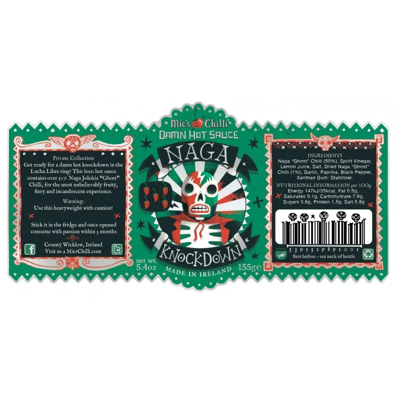 Esta loca salsa contine más del 50% de chilli Naga Jolokia «Fantasma», deparando la más increible, fiera e incandescente experiencia con sus 600.000 puntos de la escala scoville.