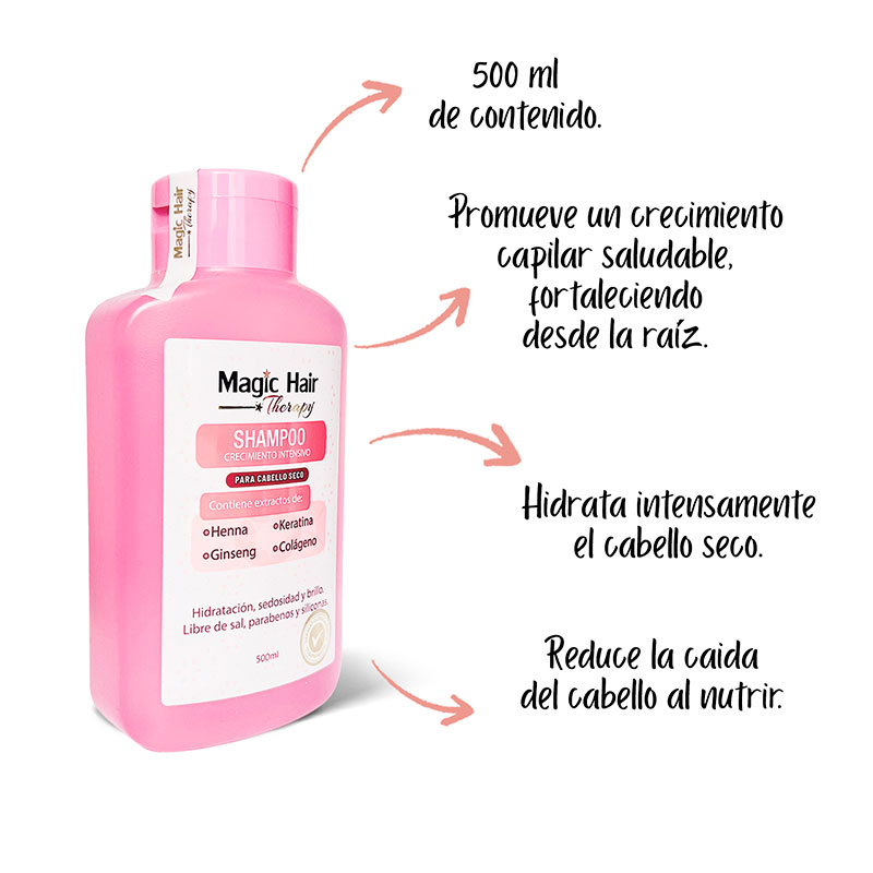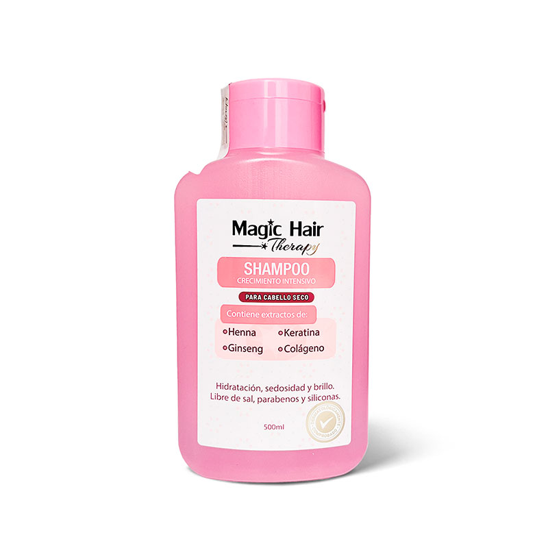 - Shampoo Cabello Seco para revitalización capilar: Shampoo Cabello Seco Magic Hair revitaliza el cabello, devolviéndole brillo y vitalidad, y reduciendo la apariencia de sequedad.