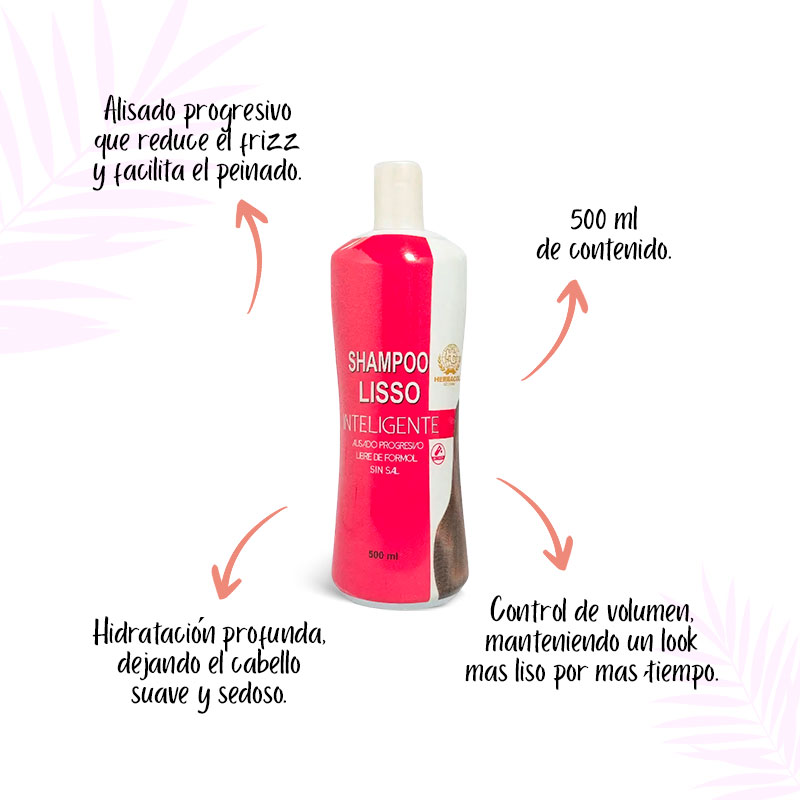 - Alisado duradero: El Shampoo Lisso Inteligente proporciona un alisado natural que controla el frizz y mantiene el cabello liso por más tiempo.