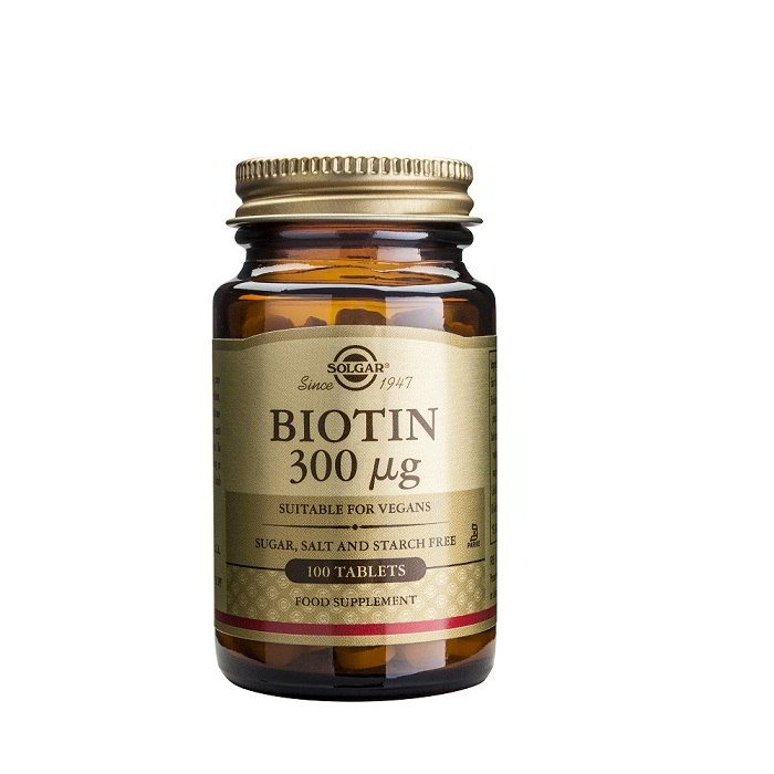Biotina 300 mcg. conocida también como vitamina H, vitamina B8 y coenzima R es un complemento alimenticio para adultos hidrosoluble.