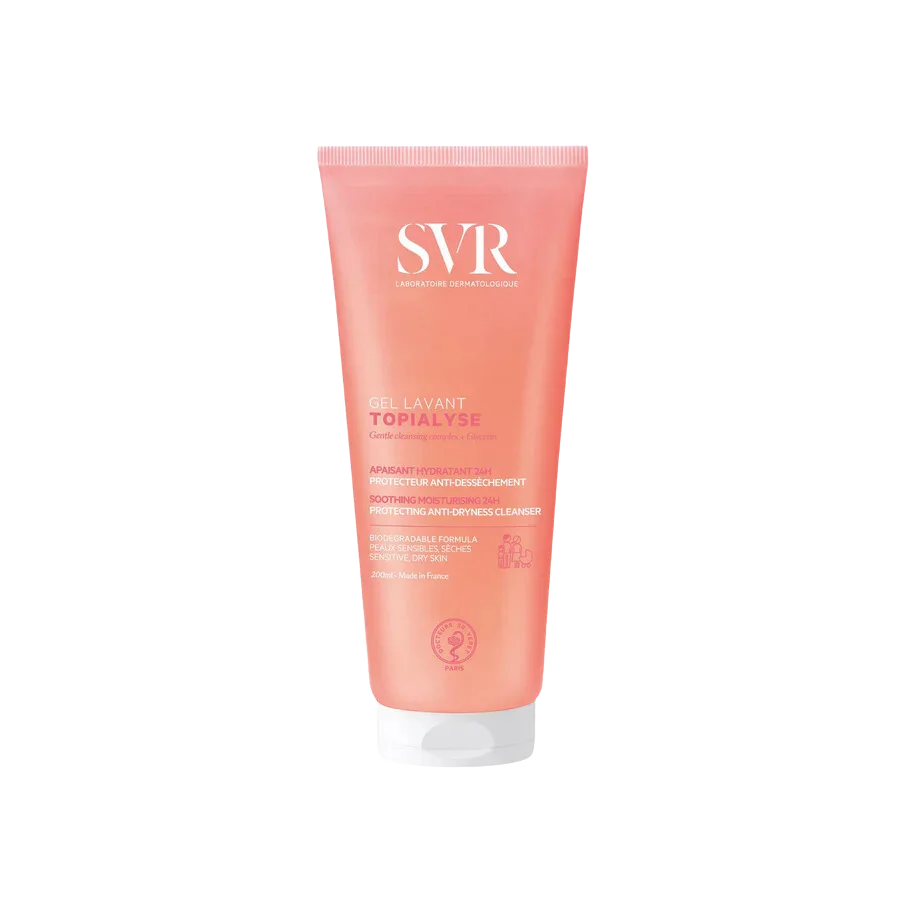 Topialyse Gel Lavant limpia suavemente y protege la piel frente la sequedad. Su fórmula calmante e hidratante 24H reduce el picor y calma la piel para un confort inmediato y duradero.