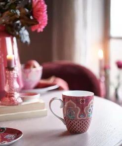TAZA LARGE 350 ML. FLOWER FESTIVAL DECO ROSA OSCURO «PIP STUDIO»