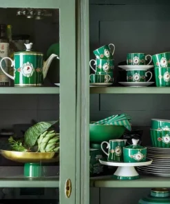 Esta taza grande de porcelana verde a rayas forma parte de la colección Love Birds favorita de todos los tiempos de Pip. Decorado con una cenefa con bordes dorados. La llamativa pieza central es un petirrojo de colores brillantes. Combina maravillosamente con el resto de artículos de porcelana de esta colección.