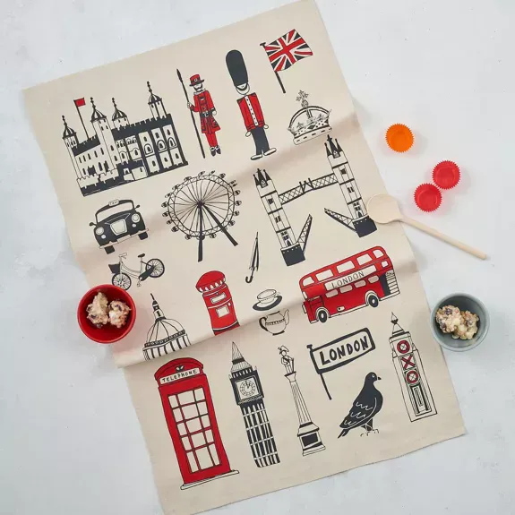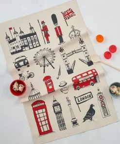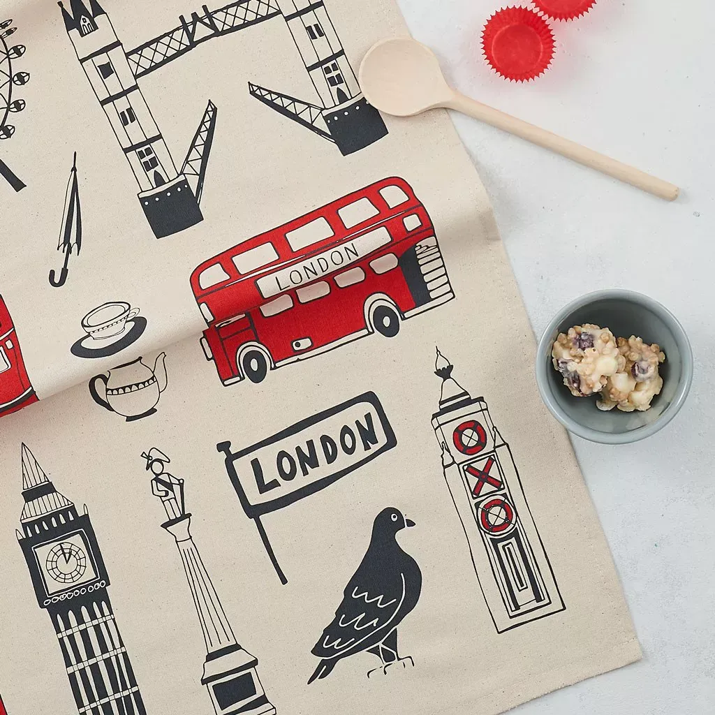 Agregue un poco de encanto de ciudad a su cocina con este paño de cocina londinense bellamente ilustrado.- Hecho a mano en Gran Bretaña, impreso en algodón 100% orgánico.