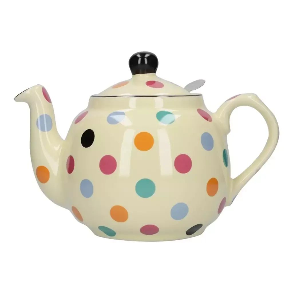 La tetera de 4 tazas London Pottery Farmhouse en un diseño de lunares multicolores Multi-Spot sirve el té perfecto una y otra vez. Diseñado por David Birch, un excelente ceramista y director de London Pottery Company, puede estar seguro de que obtendrá un excelente diseño británico de alta calidad. Esta tetera de gres de estilo tradicional viene con un filtro de malla fina removible para contener hojas de té sueltas e infusiones florales, asegurando que no entre suciedad en su taza; mientras que el pico alargado ha sido moldeado para evitar goteos o fugas. Una tetera clásica atemporal, con adiciones modernas para garantizar la taza de té perfecta en todo momento.